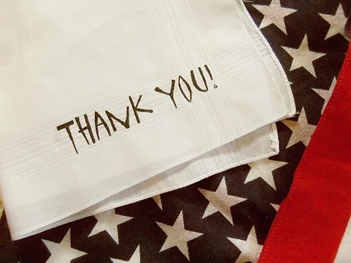 Thankies, the Thank You Handkerchiefs, are a perfect way to tell someone just how much you appreciate them in a way that is longer lasting than a paper card. Or, you can use them to clean your puppy's head after his dinner! Thank You Handkerchiefs and other fine gifts are available from my shop at L Bowman Studios.